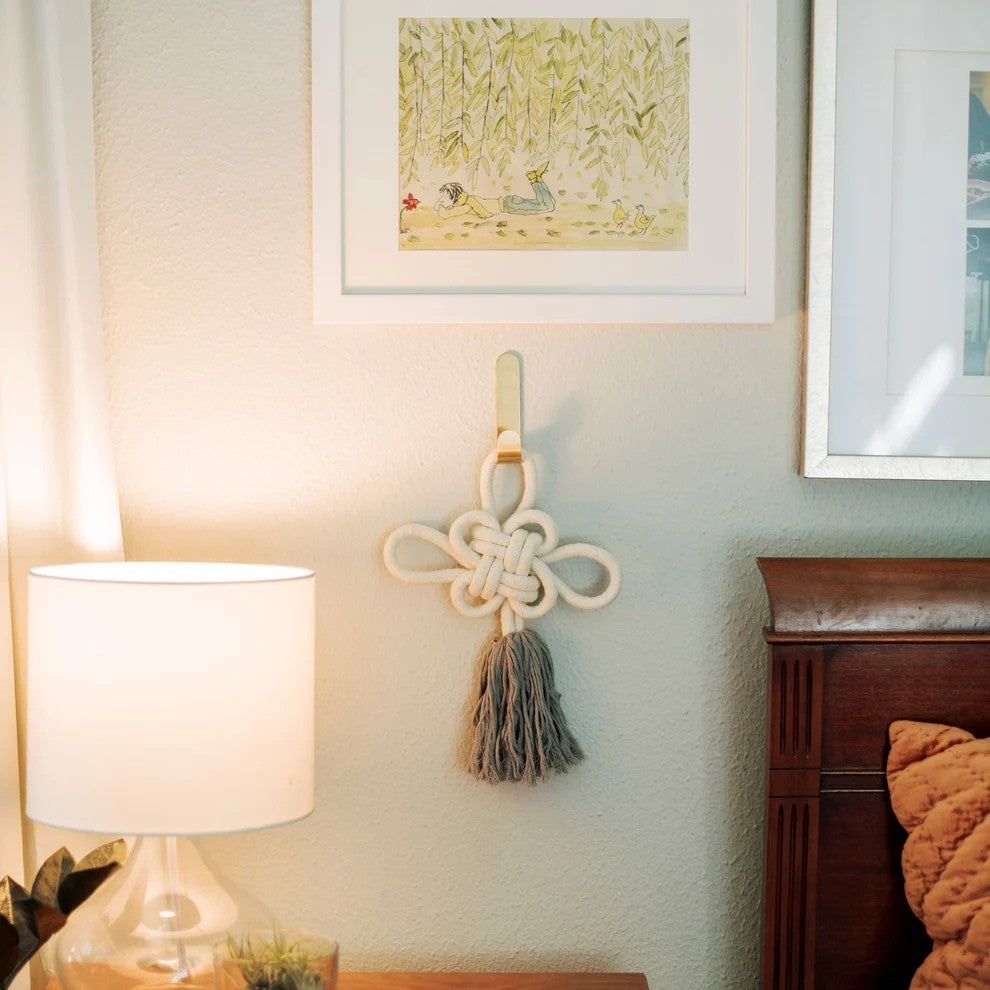 Crafted from fresh cotton rope, this handmade, fair trade statement piece symbolizes the beauty of joining hearts with those around us and choosing solidarity over division. It's colorful tassel adds a unique and bohemian touch and its neutral color easily complements other furniture and décor. We love it as nursery décor or as part of a gallery wall display.